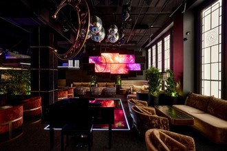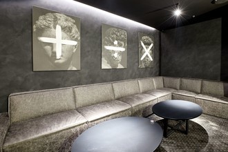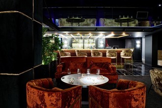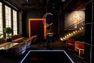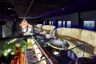 Внутри двухэтажного заведения роскошный интерьер с элегантной мебелью, оформленный в тёмных тонах. Здесь царит приватная атмосфера. На первом уровне гости могут уютно устроится за барной стойкой или на мягких креслах за низкими столиками. На втором этаже есть комфортабельные диваны для небольшой компании, зонированные ширмой из хрустальных нитей.